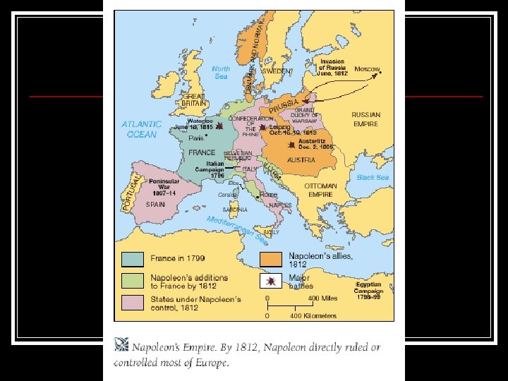 Invasion of Russia n Alexander I of Russia n n n Napoleon’s ally Refused to stop selling grain to England Napoleon invaded Russia w/ 420, 000 n Russians used a scorched earth policy n Leaving nothing for French to eat