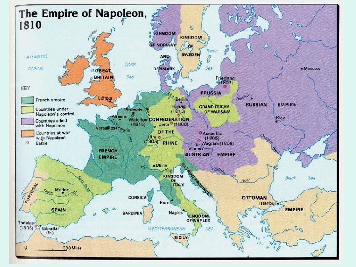 Napoleon decides to abandon his plans in the Americas & concentrates on Europe. He already annexed the Austrian Netherlands & parts of Italy to France and he set up a puppet government in Switzerland. He looks to expand his influence further. As a result, Britain persuades Russia, Austria & Sweden to join in a 3 rd coalition against France. In a series of battles, Napoleon’s army crushes the opposition. Eventually, the rulers of Austria, Prussia & Russia sign peace treaties with Napoleon. Which enabled France to build the largest European empire since the Romans. The only major enemy left was Britain, whose power was in its navy. In 1805, Napoleon tried to remove threat of that navy.