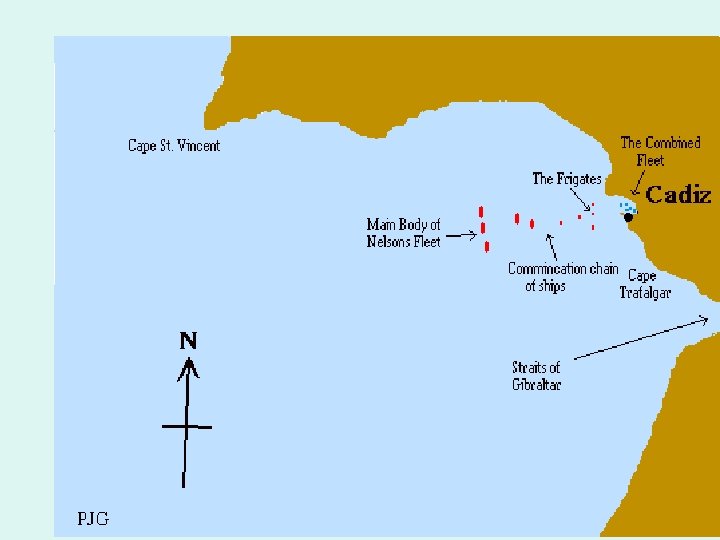 The Battle Of Trafalgar (Truh FAL guhr) Horatio Nelson The battle takes place off the southern coast of Spain in 1805. The commander of the British fleet is Horatio Nelson – the same who defeated Napoleon earlier near Egypt in 1799.