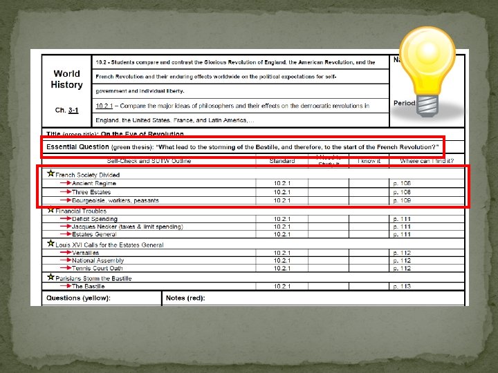 Let’s begin our roughdraft 1. Write a question for each starred heading – “How did French society being divided lead to the storming of the Bastille? ” 2. Write your response to each question – “France was divided up into three estates called the Ancient Regime. The clergy made up the first estate. The…”