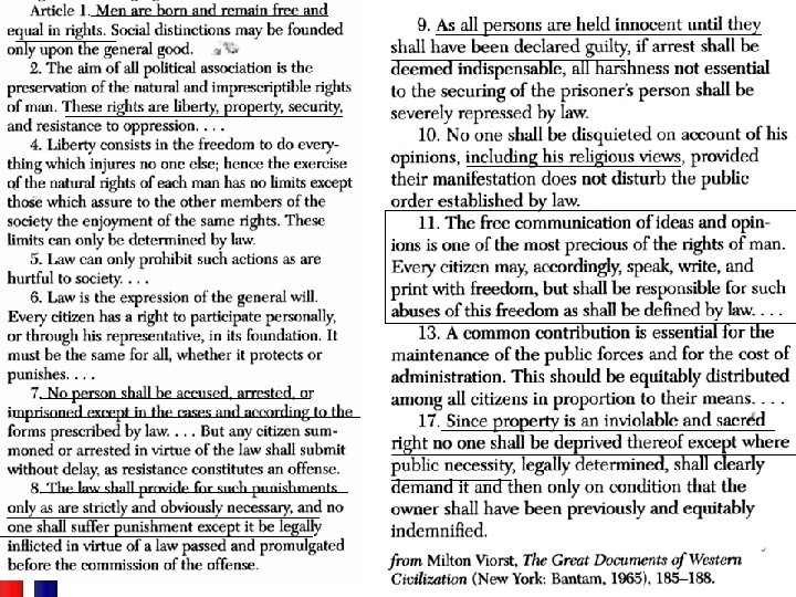 The Declaration of the Rights of Man and of the Citizen August 26, 1789 v Liberty! v Property! v Resistance to oppression! v Modeled (in part) after the Declaration of Independence
