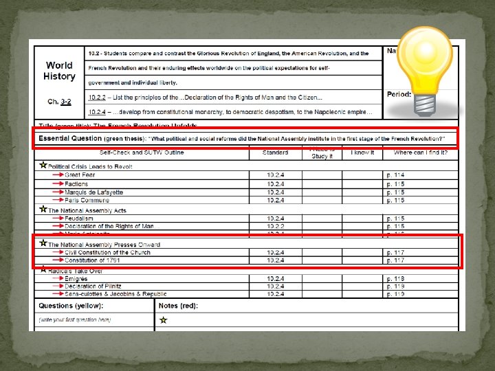 Build Background Knowledge �Recall the problems that led to the start of the French Revolution and the formation of the National Assembly. �Predict what the National Assembly might do to try to solve some of those problems. � They swore, “…never to separate and to meet wherever the circumstances might require until we have established a sound and just constitution. ”