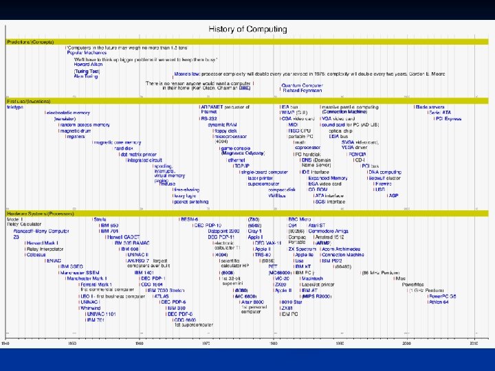 John Hopcroft n The early years primarily concerned with the size, efficiency and reliability of computers. n n n They attempted to increase the computational speed as well as reduce the physical size of computers, to make them more practical and useful. The research mainly dealt with hardware, programming languages, compilers, operating systems, and data bases. Future computer science research and applications will be less concerned with how to make computers work and more focused on the processing and analysis of such large amounts of data.