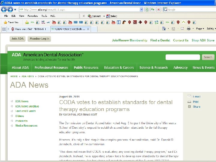 So… • If ADA and ADHA have some of the same overarching goals…. Could we (educational institutions, new students) be the catalyst to start the conversation? Or has the war gone on too long?