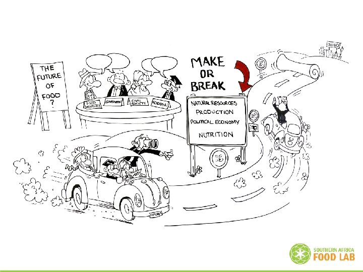 Starting point – the burning questions • • • How will we feed a growing and (mostly) urban population? How will we produce, especially in the light of limited natural resources? Who will produce food and with what support? How will climate change impact on agriculture? How will land reform play out? How will the value chain function in future and what will it look like? How will we regulate food? What is the appropriate balance between government intervention and market mechanisms? What will people be eating in the future? Can we change people’s consciousness about nutrition?