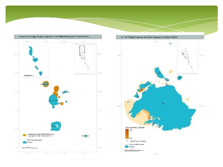 Dugong hotspots The hotspots were identified as the areas where: The local community said there were 2 to > 10 dugongs that overlapped with areas where the local community said they use gillnets for fishing and / or Where significant numbers of dugong sightings, particularly dead dugongs, were reported.