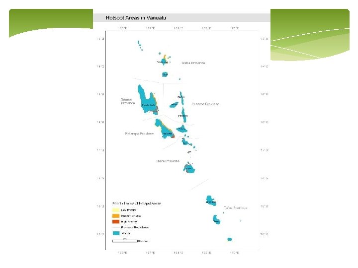 Sites: 193 sites were visited on 32 islands in all 6 provinces during the survey in 2016/7 Number of Respondents: 530 community members interviewed Gender: 62 women (11. 7%) gave responses to the questionnaire. Age: 0. 9% respondents under 15 yrs 13% 15 to 25 years 64% 26 -50 yrs 0. 4% over 50 yrs.