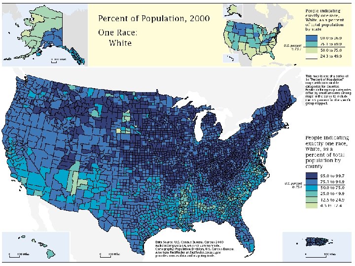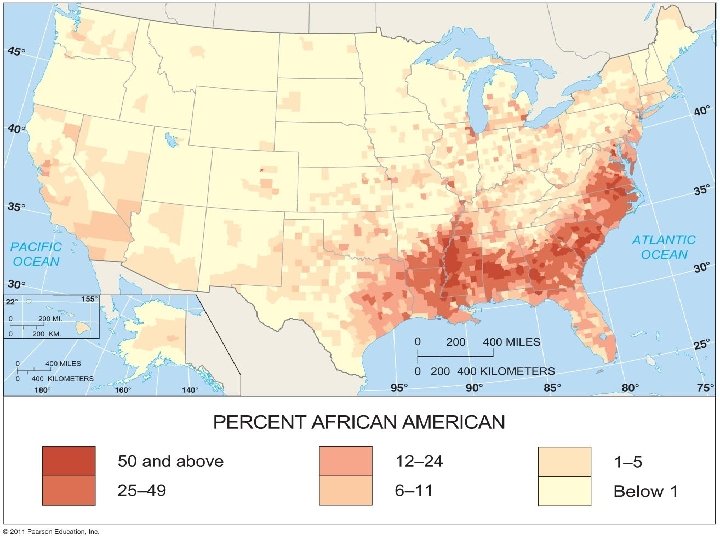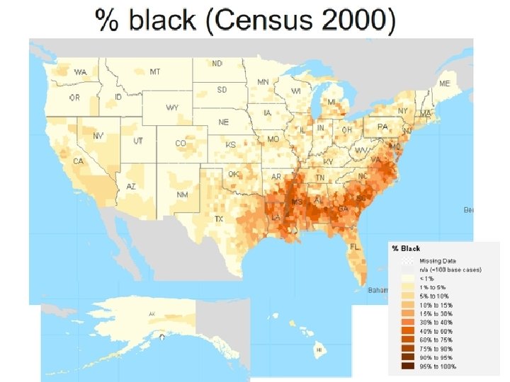 Black or African American o Highly concentrated in certain regions n South n East coast o More urban but also suburban o Minor concentration out west o Mid-West n Limited portion of the population