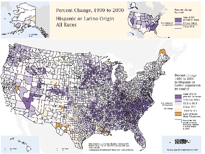 Hispanic or Latino Origin o High areas of change n Mid-Atlantic States n Southern States n Northwest States o Possible relationship to the increase in poultry plants o Chain migration to certain areas n Family and friends are happy with the possible job opportunities