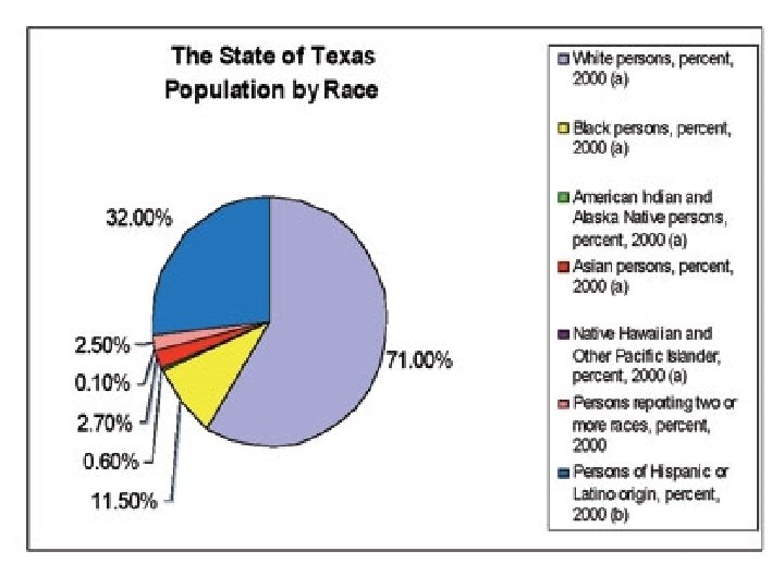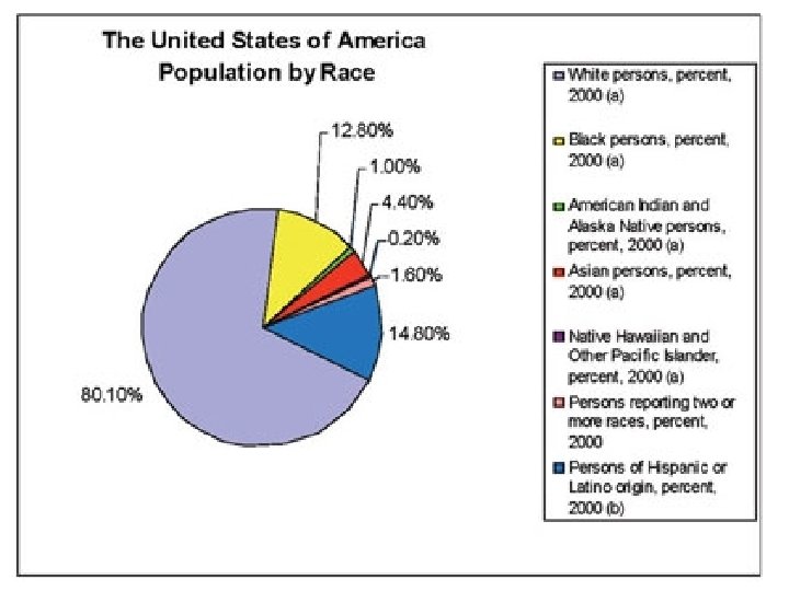 Introduction Diversity: The state or fact of being different or unlike. Also, the point of difference; variety. o Studied Races n n White Black or African American Indian or Alaskan Native Asian o Hispanic of Latino Origin o Things to keep in mind n Percent of population n Percent change from 1990 – 2000 =