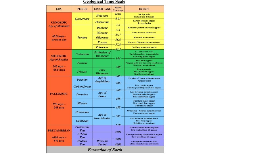 How old is the Earth? • 4. 6 Billion years • 4, 600, 000 • Divided into eras: - Cenozoic - Mesozoic - Palaeozoic - Precambrian