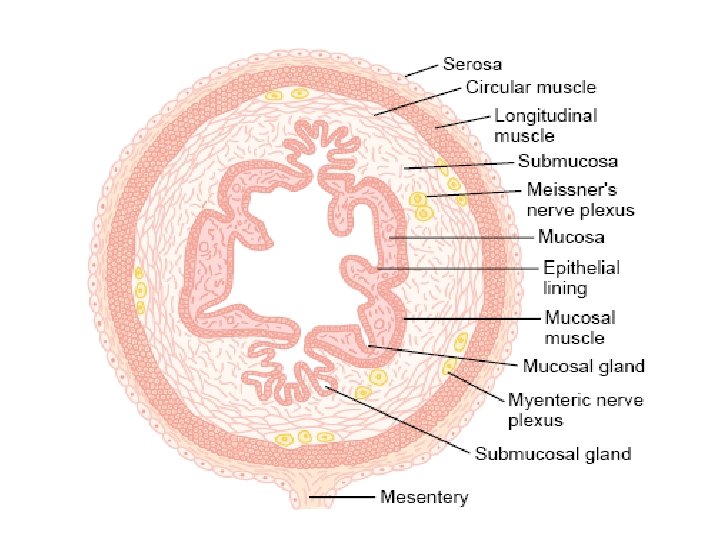 ENS - Submucosal Plexus • Location - Mucosal layer from esophagus to anus • Function - Local control - Secretion - Absorption - Contraction of muscularis mucosa
