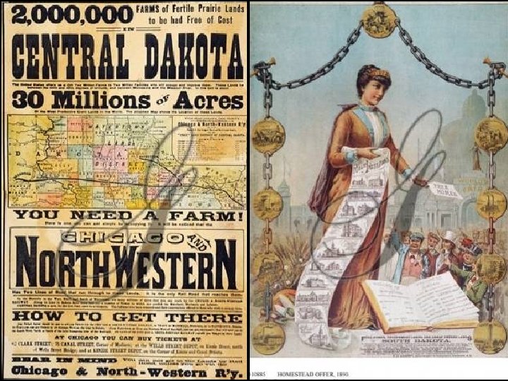Homesteads & Farmers ■ The U. S. gov’t offered incentives for farmers to settle the West: –Homestead Act (1862) gave 160 acres to citizens who pledged to “improve the land” for at least 5 years –Other gov’t acts helped develop western lands by planting trees & building irrigation systems