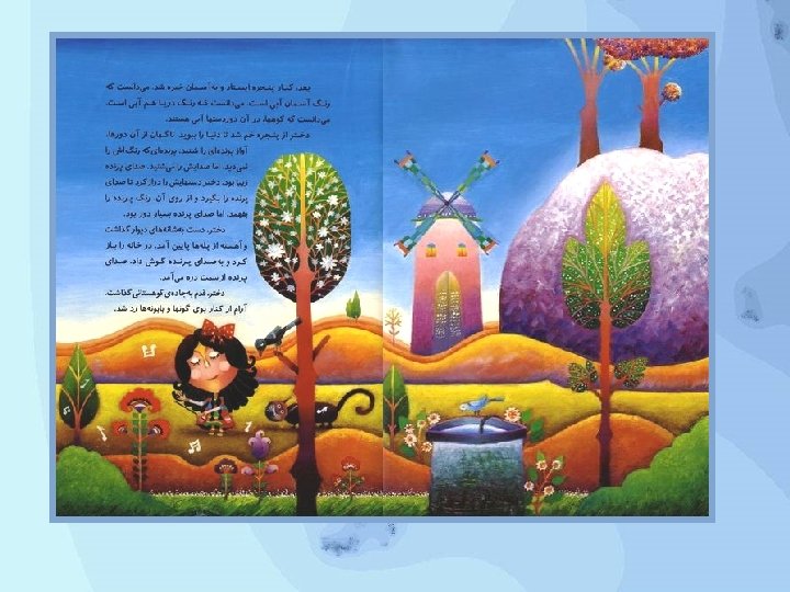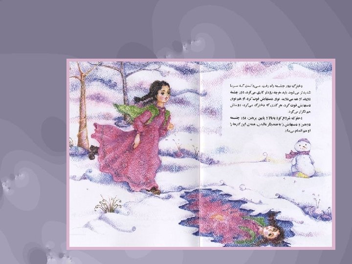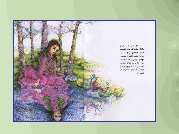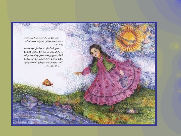 The girl and the spring Author - Nader Sharifi Illustrator - Samaneh Khademi Summary A girl could she her friend's face whenever she went to the spring. Una niña podía ver el rostro de su amiga cada vez que iba al manantial. במימייו נשתקפו , למעין שהלכה אימת כל . . . חברתה פני Publication Date 1381 (2002) http: //www. childrenslibrary. The girl and the spring