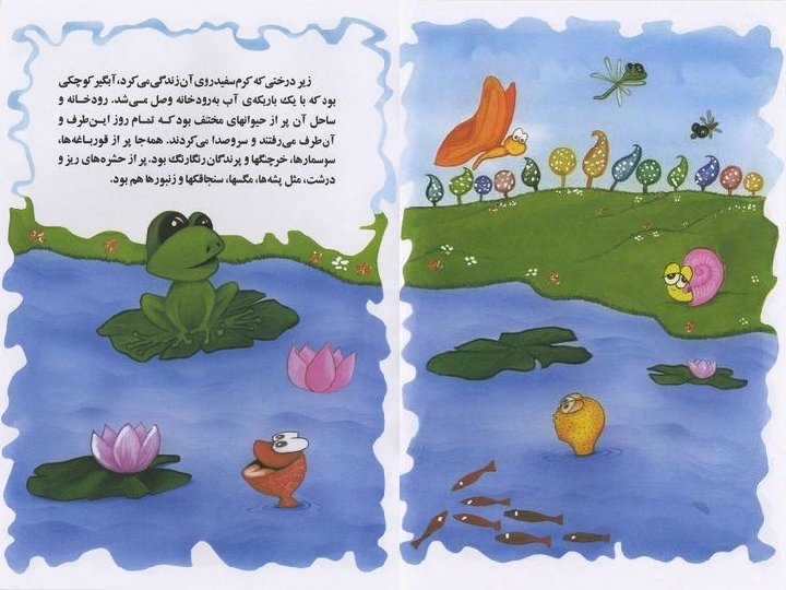 The friends who did not recognize each other Author - Kambiz Kakavand Illustrator - Fatemeh Pardakhti Summary A caterpillar falls in the water and a tadpole rescues her. When the water starts drying up, the caterpillar rescues the tadpole. Later when they meet as a butterfly and a frog they realize they are old friends. Un gusano cae al agua y un renacuajo la rescata. Cuando el agua comienza a secarse, el gusano rescata al renacuajo. Más tarde cuando se encuentran como una mariposa y una rana se dan cuenta que son viejos amigos. . הצילו ראשן , השלולית למימי נפל כשזחל . . מתייבשת החלה והשלולית ימים חלפו . . . הראשן את מציל הזחל הפעם , וכצפרדע כפרפר השנים נפגשים זמן כעבור ימימה מימים הם חברים כי , ומגלים Publication Date 1381 (2002) http: //www. childrenslibrary. the friend