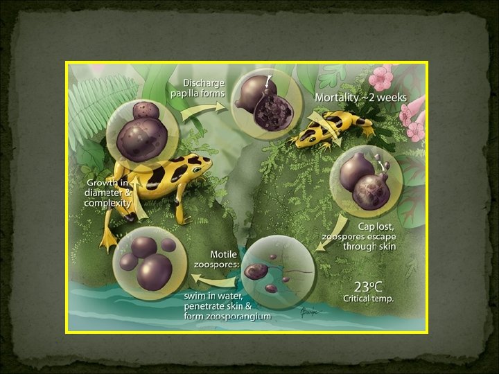 Role of climate change… Widespread Amphibian Extinctions from Epidemic Disease Driven by Global Warming - Nature 439, 161 -167 (12 January 2006), Pounds et al “Analyzing the timing of losses in relation to changes in sea surface and air temperatures, we conclude with 'very high confidence' … that largescale warming is a key factor in the disappearances. ” Riding the Wave: Reconciling the Roles of Disease and Climate Change in Amphibian Declines -PLo. S Biol 6(3): e 72. doi: 10. 1371/journal. pbio. 0060072, Lips et al “…we found no evidence that climate change has been driving outbreaks of chytridiomycosis, as has been posited in the climate-linked epidemic hypothesis. ”