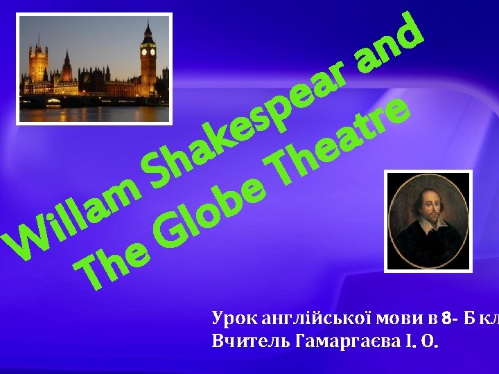 The Globe Playhouse The Globe was one of the oldest theatres in London. It seated about 1500 people. The richest of them watched the play sitting on the stage. Spectators who were not as rich stood on the ground near the stage. It was not very convenient because the stage was as high as a man. The other spectators sat in galleries. The seats were wooden benches. But you could buy a cushion to make it more comfortable. During the play vendors wandered around selling food and drink. Four hundred years ago only men played in theatre. Young boys played female characters. During the show a flag waved above the playhouse. There were no lamps in the Globe, so the actors played only in daylight. There were no curtains on the stage. They did not use scenery or furniture. Sometimes they used signs like «forest» or «castle» instead. The audience really had to use their imagination! William Shakespeare, a world famous playwright, worked at the Globe and made it famous. Shakespeare wrote thirty-seven plays. They were always popular, even now you can watch his plays at theatres in your city. In London, England you can once again watch Shakespeare’s plays at Shakespeare’s Globe. This is a new theatre built in 1997 and looks exactly the same as the Globe of Shakespeare’s time.