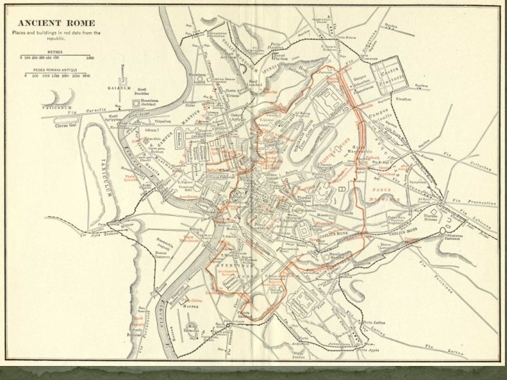 Origins of Rome �Legend: Romulus and Remus raised by shewolf 733 BC traced boundaries with plow �Later: Virgil’s Aeneus, hero of Troy, roams the Med looking for a home �Reality: Etruscans �unsure of origin �used iron, bronze and silver �Rome and Latins under rule of king �beginning fear of kings, rebelled �invaded by Gaul 390 BC