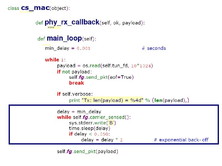 Some numbers. . • Time to switch freq ~ 0. 001 sec (Have to verify) • Modulation: – GMSK, [ DBPSK, DQPSK didn’t work ] – Bit rate = 500 k [ CPU Maxed out ] • Throughputs: – UDP: 520 kbps ! (PHY: 500 kbps) : Error in Netperf ? – TCP: 20 ~ 80 Kbps