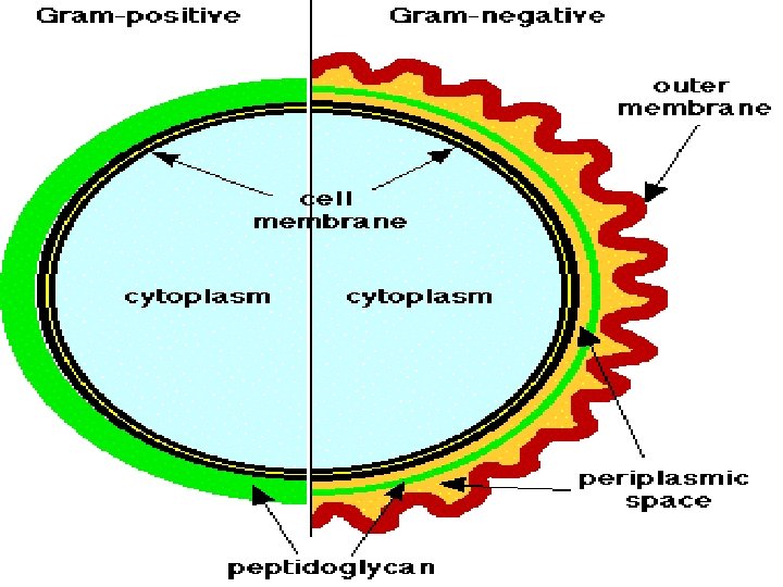 The characteristic compound found in all true bacterial cell walls is peptidoglycan. The amount of PPG is among one of the differences between the GP and GN cell walls. Gram-positive cell walls Gram-negative cell walls • • • Thick peptidoglycan 90% peptidoglycan Teichoic acids 1 layer Not many polysaccharides • In acid-fast cells, contains mycolic acid • • • Thin peptidoglycan 5 -10% peptidoglycan No teichoic acids 3 layers Outer membrane has lipids, polysaccharides • No acid- fast cells (mycolic acid)