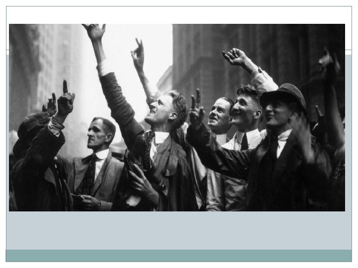 “Everybody ought to be rich” Stock market soars Working people made decent wages Real wages: money with which they could actually purchase things, grew. Unemployment was low