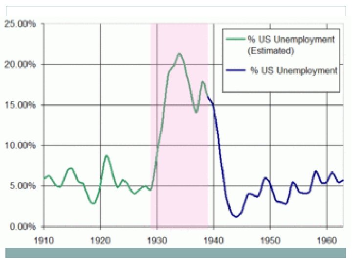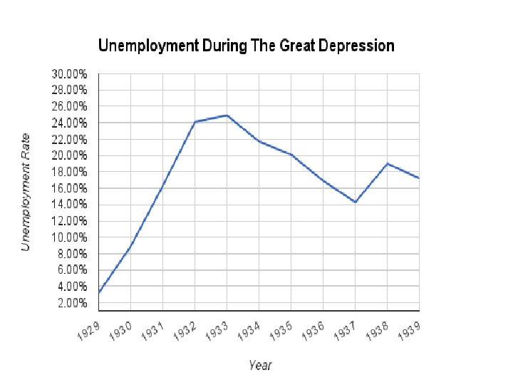 What caused the Great Depression? Over speculation: stocks were bought with borrowed money. Those stocks were then used as collateral to secure more loans to buy more stocks. Investors lose confidence: stock market crashes. Government policies: Interest rates are cut in the 1920’s to stimulate economic growth. In 1929, the government reverses policy and introduces a “tight Money” policy to dry up credit. Tariffs