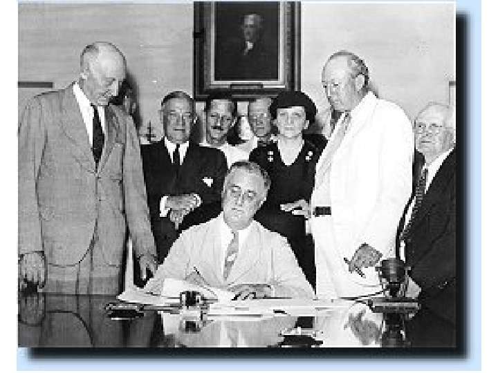 n n 4. Fair labor Standards – set a minimum wage and max work week 5. Social Security Act – one of the most important, gave workers unemployment insurance, old age pensions and $ to the ill and handicapped.