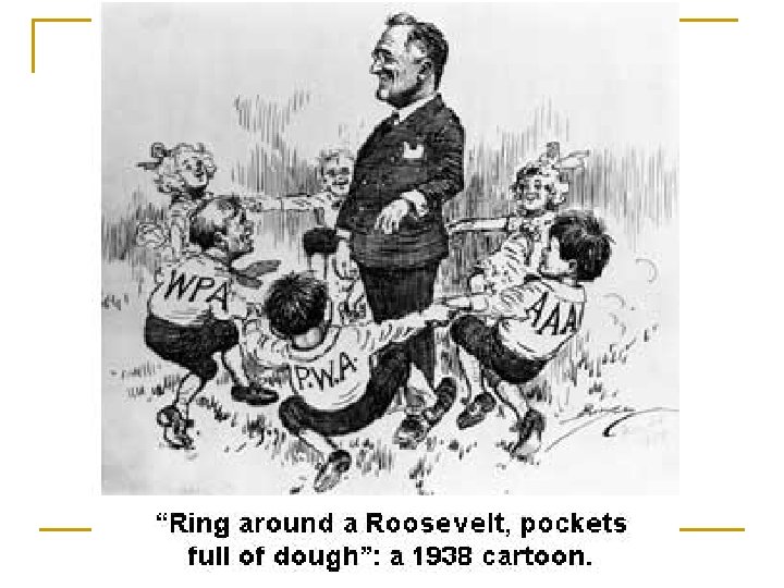 Critics of the New Deal n n n Some people felt FDR was acting as a dictator Some felt the govt isn’t doing enough Big Business owners dislike ND b/c it was Pro-Union Women – no programs specifically for them, and paid lower wages Blacks – no hiring “rules” and programs are segregated q AAA paid money to landowners not sharecroppers