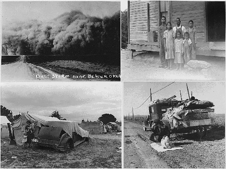 The Dust Bowl n n n The Southern Great Plains suffered an environmental disaster during the 1930’s known as the “Dust Bowl”. The hardest hit were western Kansas and Oklahoma, northern Texas, and eastern Colorado and New Mexico. Causes of the Dust Bowl included drought, high winds, and careless farming techniques. As a result thousands of farmers went bankrupt and had to give up their farms. Many migrated to California and became migrant workers, moving from place to harvest fruits and vegetables John Steinbeck’s novel, “The Grapes of Wrath”, portrayed the difficulties of Dust Bowl farmers.