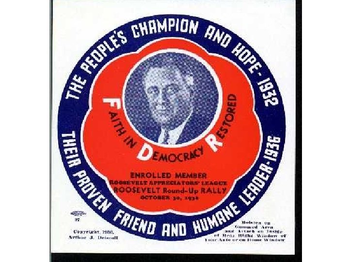 Reconstruction Finance Corporation As the economic condition in America continued to worsen, Hoover finally took actually establishing the RFC Extended credit to banks, insurance corporations, and large American businesses ◦ Part of “Trickle Down Economics” ◦ Thought was, once businesses improved, hopefully jobs would become available Many Americans resented this- viewed it as “aid to the rich” HOWEVER- this really was the beginning of the first ever government aid…prepared Americans for FDR’s approach