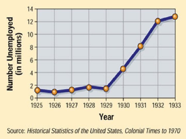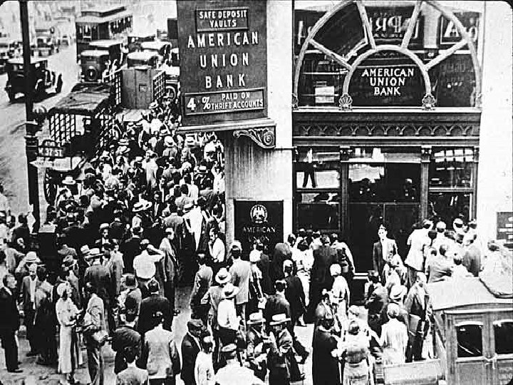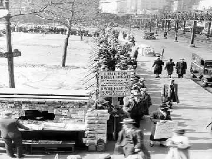 Domino Effect n Banks Closed – Banks lost everything they had invested due to buying on Margin. Closed. People lost life savings. 11, 000 banks closed (almost half) by 1933 n Businesses Closed – Businesses can’t function without banks, 90, 000 closed. n One out of Every four people were fired. n Those who kept their jobs got pay cuts and reduced hours. n The Great Depression had begun. n Effects fo the Great Depression