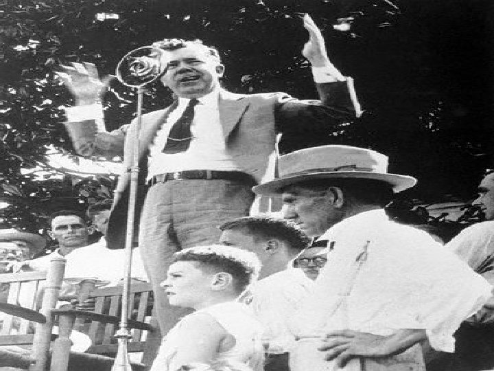 The New Deal is Under Attack n FDR in general was supported by a majority of Americans, but his most outspoken critics were the Social Darwinists. n Many people thought FDR was putting the U. S. into bigger trouble because we were spending more money than we were making. n This was called Deficit Spending, or spending more money than the country makes. n Huey Long – Against the New Deal. Wanted a communist style gov’t. Was assassinated by a lone gunman. n Many felt the government had too much control over business interests.