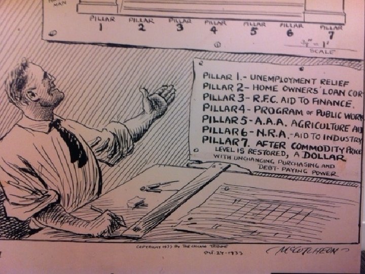 Hoover’s (in)Actions Voluntary cooperation Charitable acts No lay-offs No pay raises NO DIRECT RELIEF! Public Works Boulder Dam Intervention Federal Farm Board National Credit Corporation Federal Home Loan Bank Act: lowered mortgage rates Reconstruction Finance Corporation (RFC): emergency
