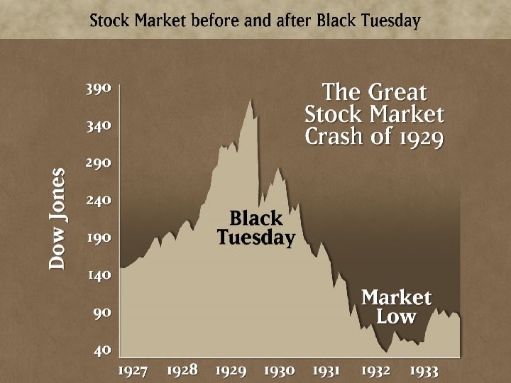 Continued… Trickle down (d)effect Wealthy gained— 5% owned 25% of all wealth Business profits soared—stagnant wages and prices/increased productivity Low-taxes for wealthy—capital investments Everybody else Wages were stagnant Credit The Stock Market Holding companies—pyramid schemes Speculation—capital gains Margin loans