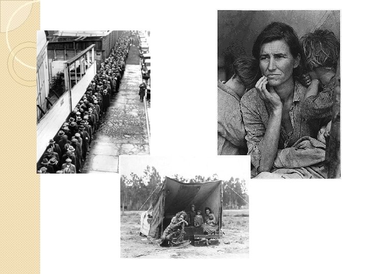 The Great Depression �Causes of the Great Depression – ◦ People of the U. S. had borrowed more money than they could repay ◦ Factories had produced more goods than they could sell ◦ Farmers also overproduced, causing prices to decline ◦ High tariffs ◦ Speculation in the stock market