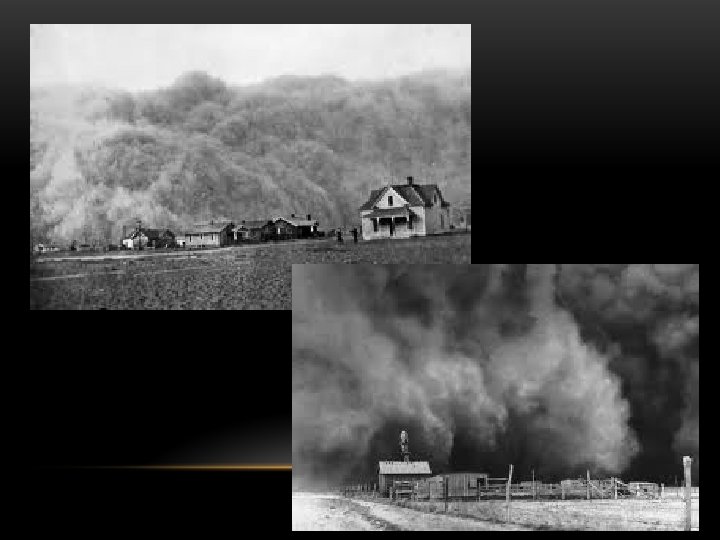 THE DUST BOWL • The effects of the Great Depression were made worse by the Dust Bowl: • Heavy droughts & over farming in the West destroyed the Plains • In the early 1930’s, windstorms swept away loose soil • Farmers in the Plains left their farms & searched for work or better land in the West coast states