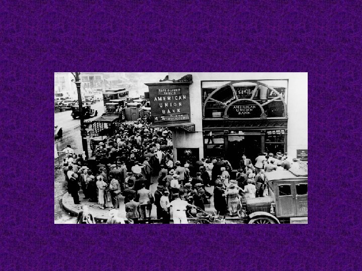 Depression hits the U. S n n n Paper money vs. the gold standard Bank Failure New Federal Reserve System fails to act Stock Market Crash of October 24, 1929 Hawley-Smoot Tariff-1930 -Highest level to date of a U. S. tariff