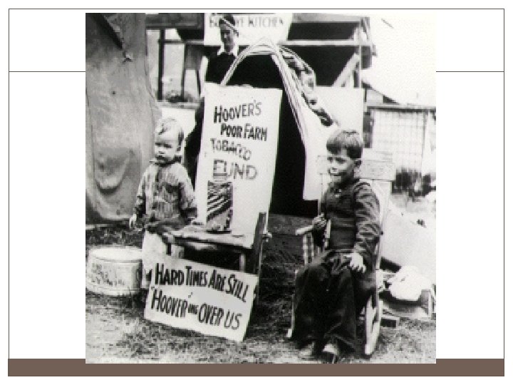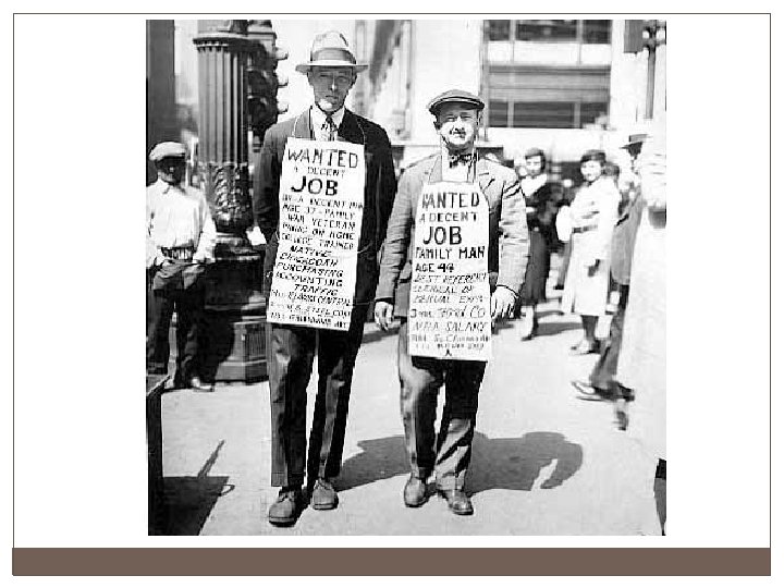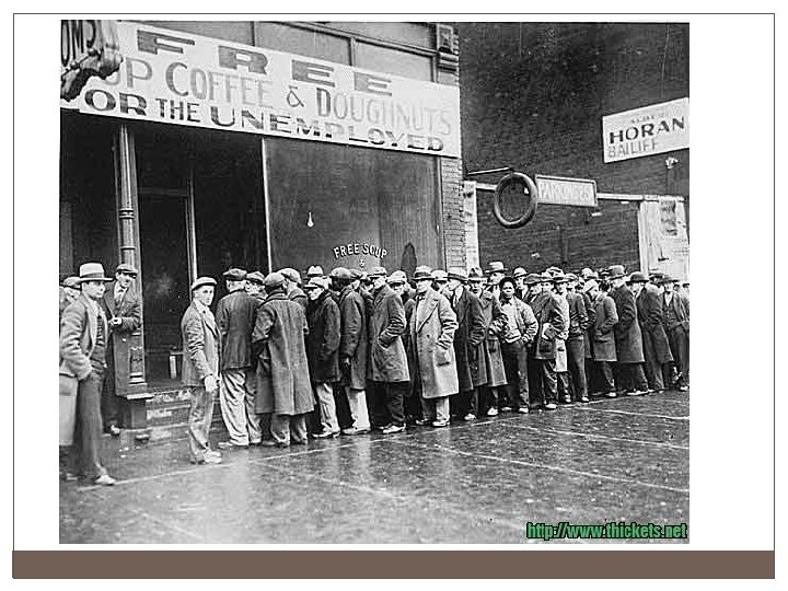 Statistics Bushel of wheat in 1919 =$2. 16 Bushel of wheat in 1932= $0. 38 Farmers in Iowa dumped 1000 gallons of milk on the roadside to protest prices Unemployment reached 25% Bank Failures quadrupled from 1929 to 1933