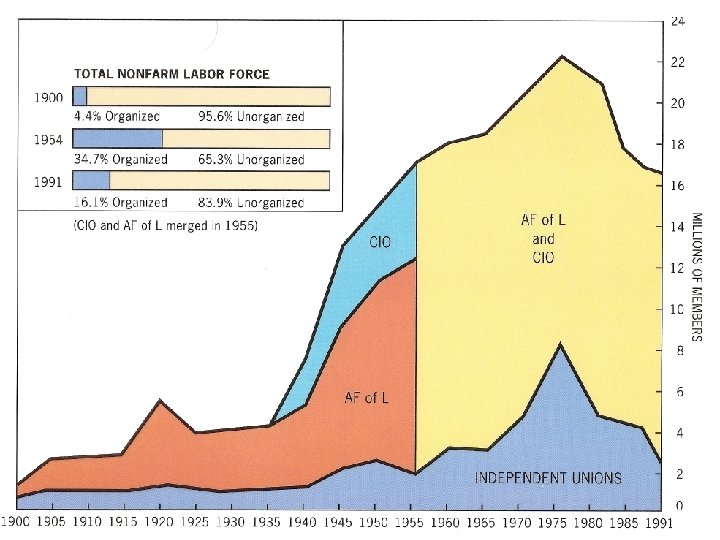 Labor • 1937 United Auto Workers “Sit-down” Strike in Flint, Michigan • 1937, U. S. Steel accepted unionization • Memorial Day Massacre, 1937 in Chicago at Republic Steel mill – part of “Little Steel” • 1941, NLRB forced “Little Steel” to recognize unions and reinstate all workers fired for union activity