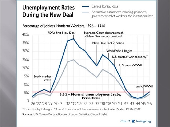 Looking Ahead What ended the depression? FDR’s 1 st term Annual growth up 9% Unemployment down from between 25 -33% TO 9 -14% 2 nd term Unemployment up again Would not go down until after 1941