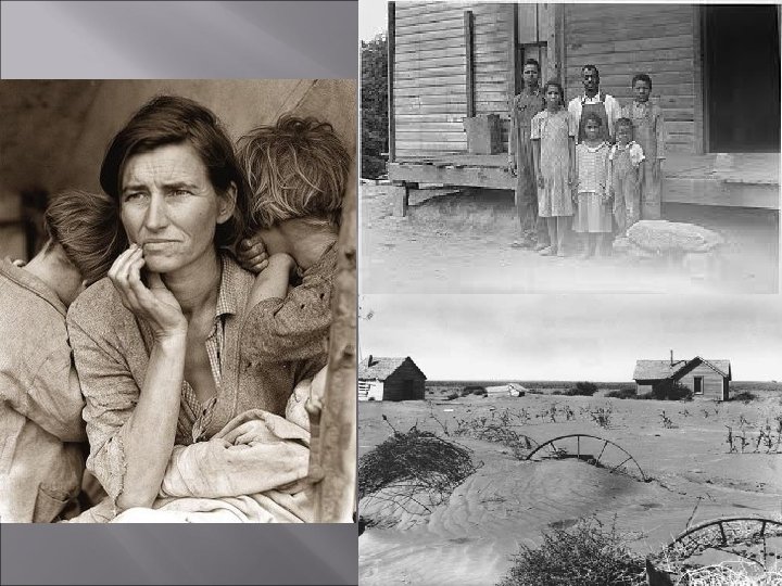 Life during Depression Native Americans Granted citizenship and voting rights in 1924 Indian Reorganization Act 1934 Repealed Dawes Act of 1887 Returned lands to control of tribes and supported preservation of native culture Enabled natives to buy back land John Collier Commissioner of Bureau of Indian Affairs 1933 Improved life on reservations Conservation and CCC projects to employ natives Mexican Americans Two million in U. S. Suffered from discrimination Principal source of labor in 1920 s During depression high unemployment and drought caused dramatic growth in white migrant workers Thousands returned to Mexico 500, 000 Voluntary and forced