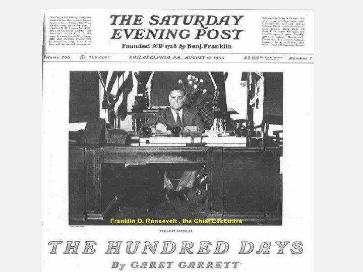 FDR LAUNCHES NEW DEAL • FDR promised a “New Deal” for the American people • He took office with a flurry of activity known as “The Hundred Days” • The 100 Days lasted from March to June 1933