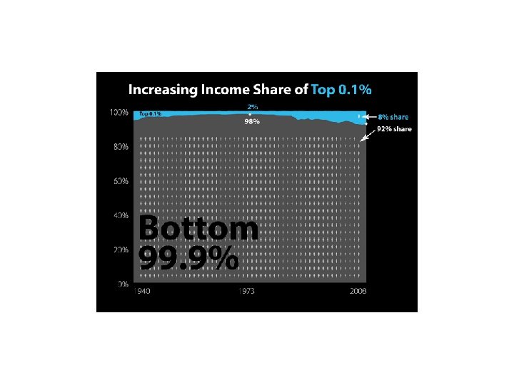 THE Middle Class Is Being Systematically Wiped Out Of Existence In America Michael Snyder, Business Insider -- July 15, 2010 01 ) 83% of all U. S. stocks are in the hands of 1% of the people. 02 ) 61% of Americans "always or usually" live paycheck to paycheck, which was up from 49% in 2008 and 43% in 2007. 03 ) 66% of the income growth between 2001 and 2007 went to the top 1% of all Americans. 04 ) 36% of Americans say that they don't contribute anything to retirement savings. 05 ) A staggering 43% of Americans have less than $10, 000 saved up for retirement. 06 ) 24% of American workers say that they have postponed their planned retirement age in the past year. 07 ) Over 1. 4 million Americans filed for personal bankruptcy in 2009, which represented a 32% increase over 2008. 08 ) Only the top 5% of U. S. households have earned enough additional income to match the rise in housing costs since 1975. 09 ) For the first time in U. S. history, banks own a greater share of residential housing net worth in the United States than all individual Americans put together. 10 ) In 1950, the ratio of the average executive's paycheck to the average worker's paycheck was about 30 to 1. Since the year 2000, that ratio has exploded to between 300 to 500 to 1. 11 ) As of 2007, the bottom 80% of American households held about 7% of the liquid financial assets. 12 ) The bottom 50% of income earners in the United States now collectively own less than 1% of the nation’s wealth. 13 ) Average Wall Street bonuses for 2009 were up 17% when compared with 2008. 14 ) In the United States, the average federal worker now earns 60% MORE than the average worker in the private sector. 15 ) The top 1% of U. S. households own nearly twice as much of America's corporate wealth as they did just 15 years ago. 16 ) In America today, the average time needed to find a job has risen to a record 35. 2 weeks. 17 ) More than 40% of Americans who actually are employed are now working in service jobs, which are often very low paying. 18 ) For the first time in U. S. history, more than 40 million Americans are on food stamps, and the U. S. Department of Agriculture projects that number will go up to 43 million Americans in 2011. 19 ) This is what American workers now must compete against: in China a garment worker makes approximately 86 cents an hour and in Cambodia a garment worker makes approximately 22 cents an hour. 20 ) Despite the financial crisis, the number of millionaires in the United States rose a whopping 16% to 7. 8 million in 2009. 21 ) Approximately 21% of all children in the United States are living below the poverty line in 2010 – the highest rate in 20 years. 22 ) The top 10% of Americans now earn around 50% of our national income.