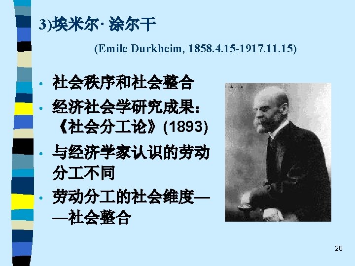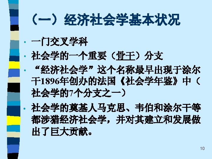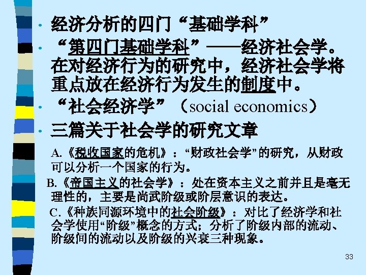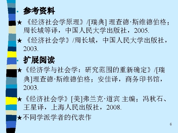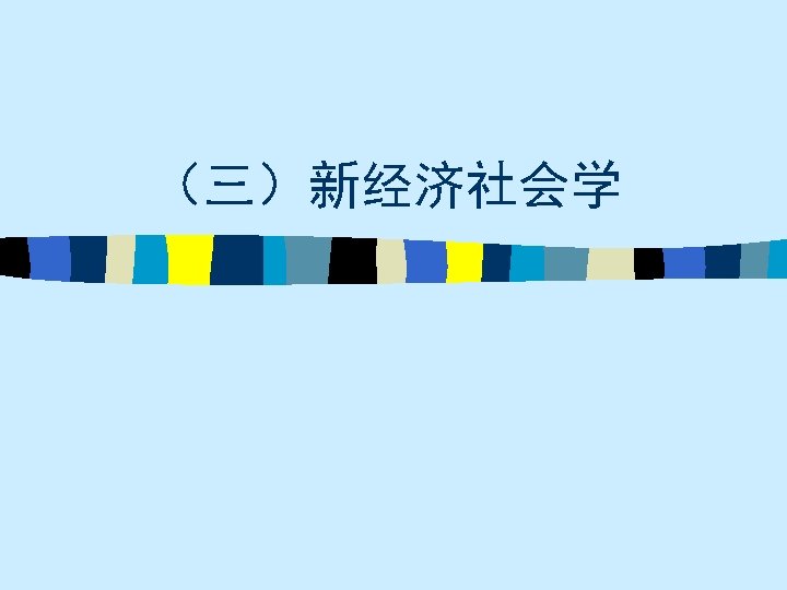 • 趋势之三 Correspondingly, in our opinion it is more fruitful to pursue the kind of approach to economic sociology taken by Weber and Schumpter in their social economics, or Sozialoekonomik. Such an approach is broad-based and multi-disciplinary. Economic sociology, in other words, should have its own distinct profile as well as cooperate and co-exist with economic theory, economic history and economic anthropology. 59