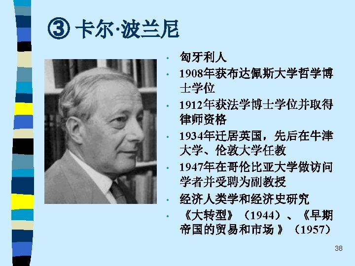 The Great Transformation: The Political and Economic Origins of Our Times 大转变、大转折、 大转型、巨变 冯钢,刘阳 译,浙江人 民出版社, 2007. 39