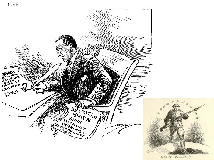The Zimmermann Note • Early in 1917, German foreign minister, Arthur Zimmerman, sent a telegram to the German ambassador to Mexico. • In the telegram, the German’s sought Mexican support in the war and in exchange the Germans would help Mexico reclaim parts of the southwestern U. S. it had lost in 1848. • Great Britain intercepted the telegram and had it printed in American newspapers. Americans were outraged at this threat. • In April, 1917 Wilson asked Congress to declare war on Germany. • Wilson proclaimed, “That we (the U. S. ) have no selfish ends to serve. ” Instead America wanted to help “make the world safe for democracy. ”