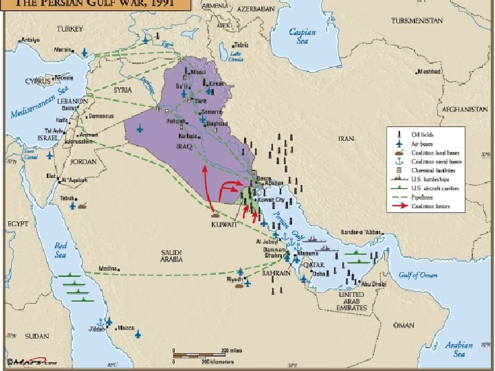 The Gulf War (1990 -1991): Iraq invaded Kuwait A destroyed Iraqi tank