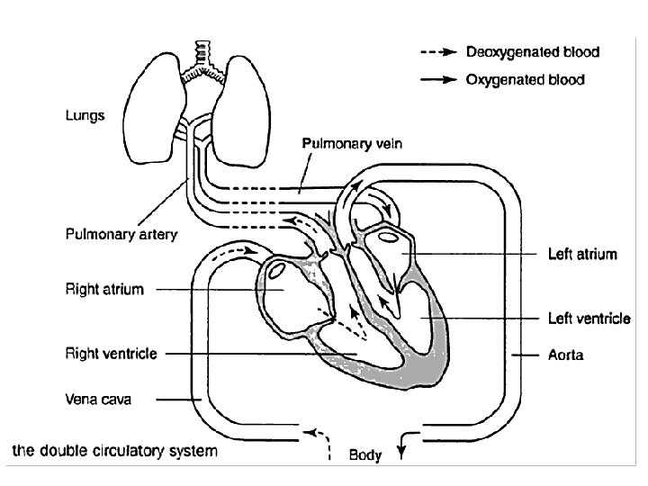 DEOXYGENATED BLOOD • This is blood that is depleted of oxygen because it has travelled around the body supplying the body cells with the oxygen. • The RIGHT side of the heart pumps deoxygenated blood which has a slightly blue colour.