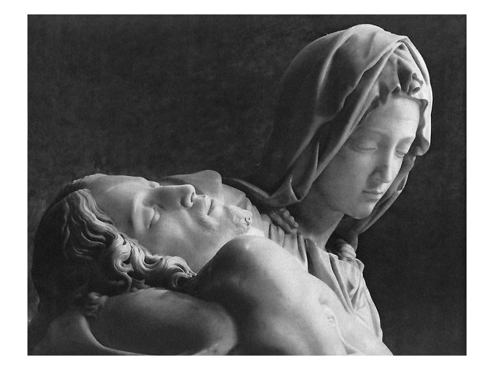 Pieta • Pieta means ‘Pity, ’ and this is certainly the emotion that this magnificent sculpture evokes. • We feel pity for Christ’s suffering, but also for his grieving mother, who holds her son’s body in an attitude of quiet acceptance.
