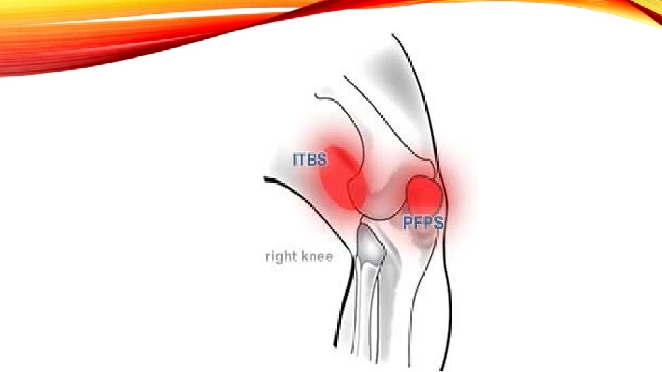 CHRONIC INJURIES: DEVELOP OVER TIME • Patellar Tendinitis • Pes Anserine Tendinitis • Bursitis(although a fall can be acute – most commonly chronic) • Osgood Schlatter • Chondromalacia Patella (Patella Femoral Syndrome) • Iliotibial Band Syndrome